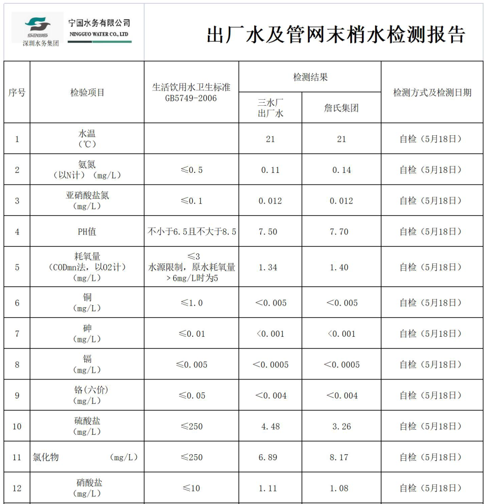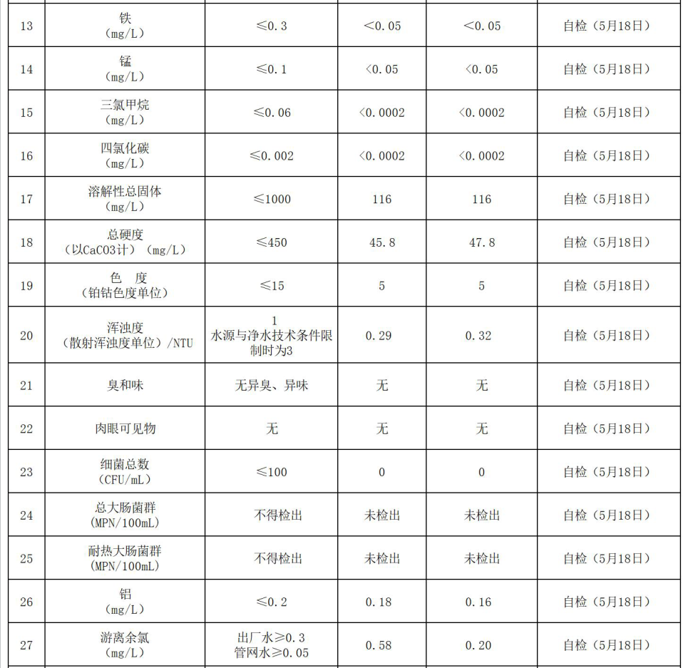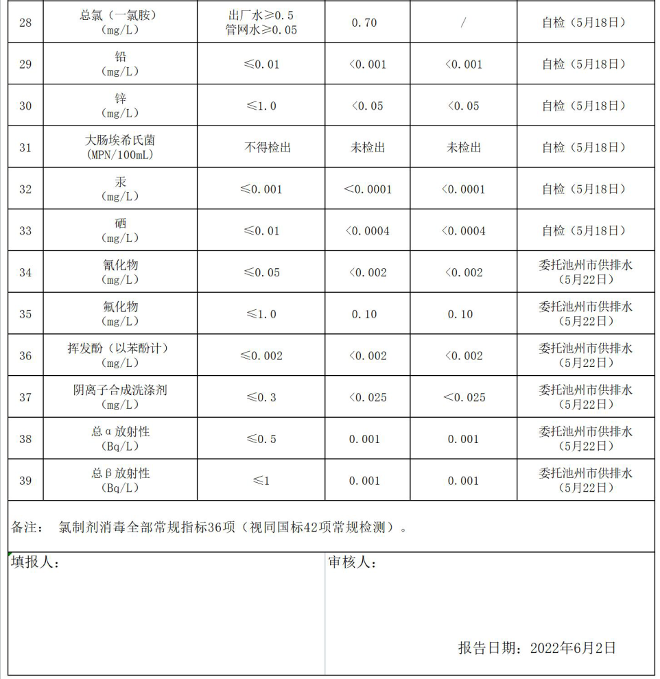 2022年5月份水質(zhì)報告