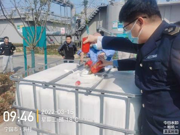 城北污水處理廠全員積極配合市場監(jiān)督管理局的銷毀行動,為保證正常生產(chǎn)不受影響,將所有“假酒”“假飲料”等進(jìn)行開瓶后倒入提前準(zhǔn)備好的儲存罐里。同時,安排化驗(yàn)室對罐中液體進(jìn)行取樣化驗(yàn),在保證各項(xiàng)出水指標(biāo)達(dá)標(biāo)的前提下,有計(jì)劃的將罐中液體作為污水進(jìn)行無害化處理。