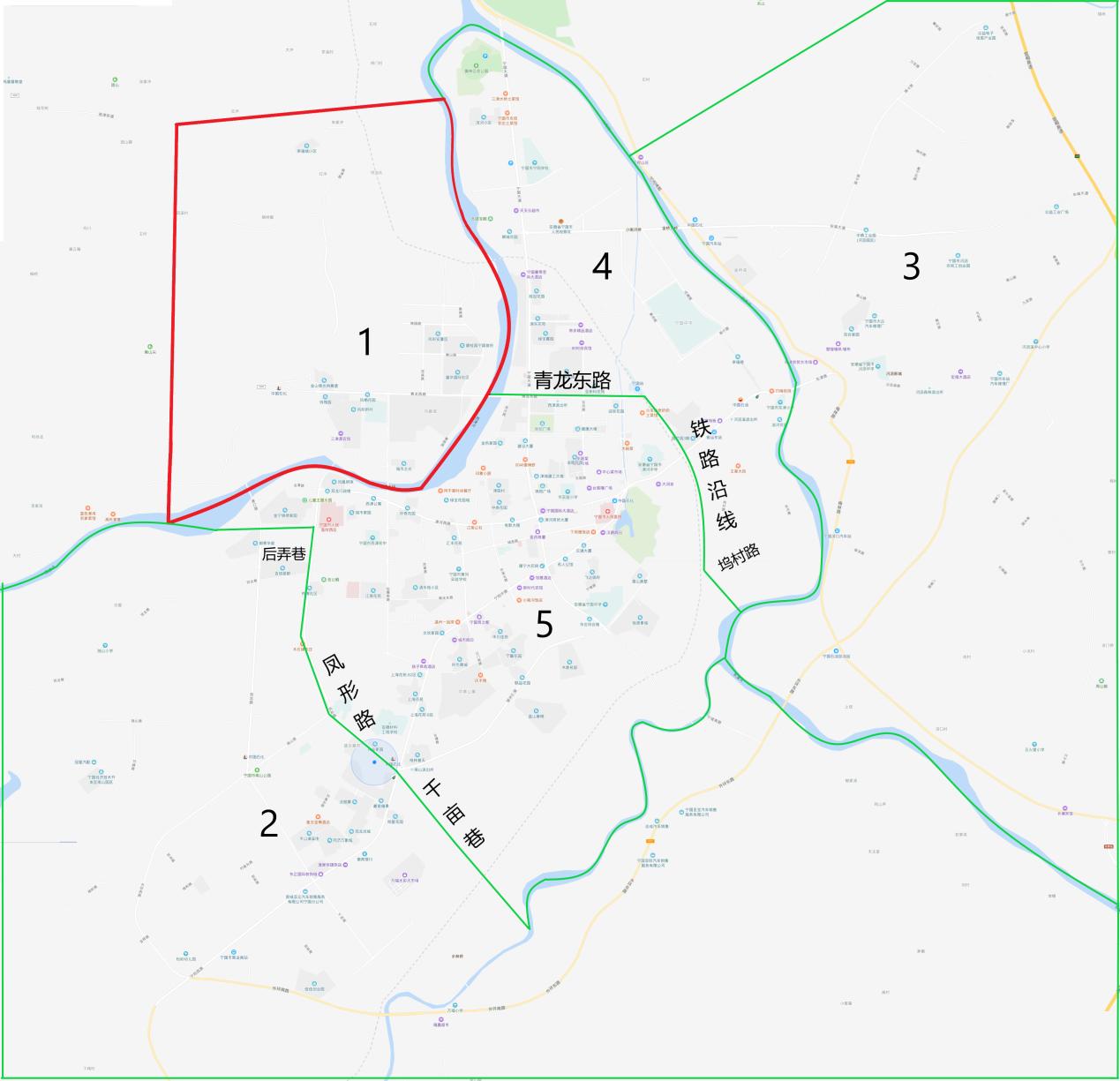 4號(hào)片區(qū)為寧國(guó)大道沿線(xiàn)及鐵路線(xiàn)以東至東津河片區(qū),包含寧國(guó)花園、華貝廣場(chǎng)、卿城花園、濱河小區(qū)、園竹園等小區(qū);潘村、塢村等自然村;以及片區(qū)內(nèi)企業(yè)。