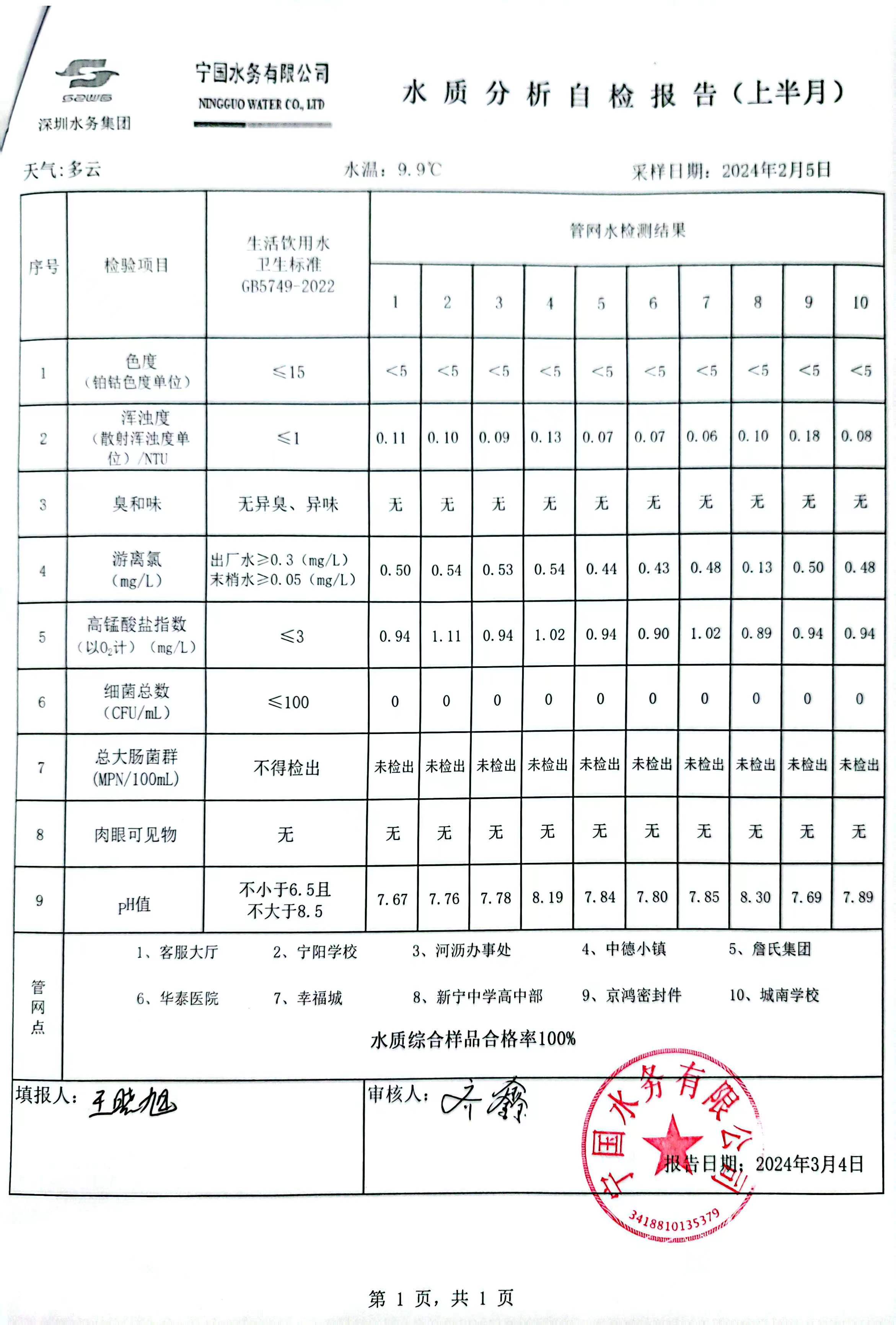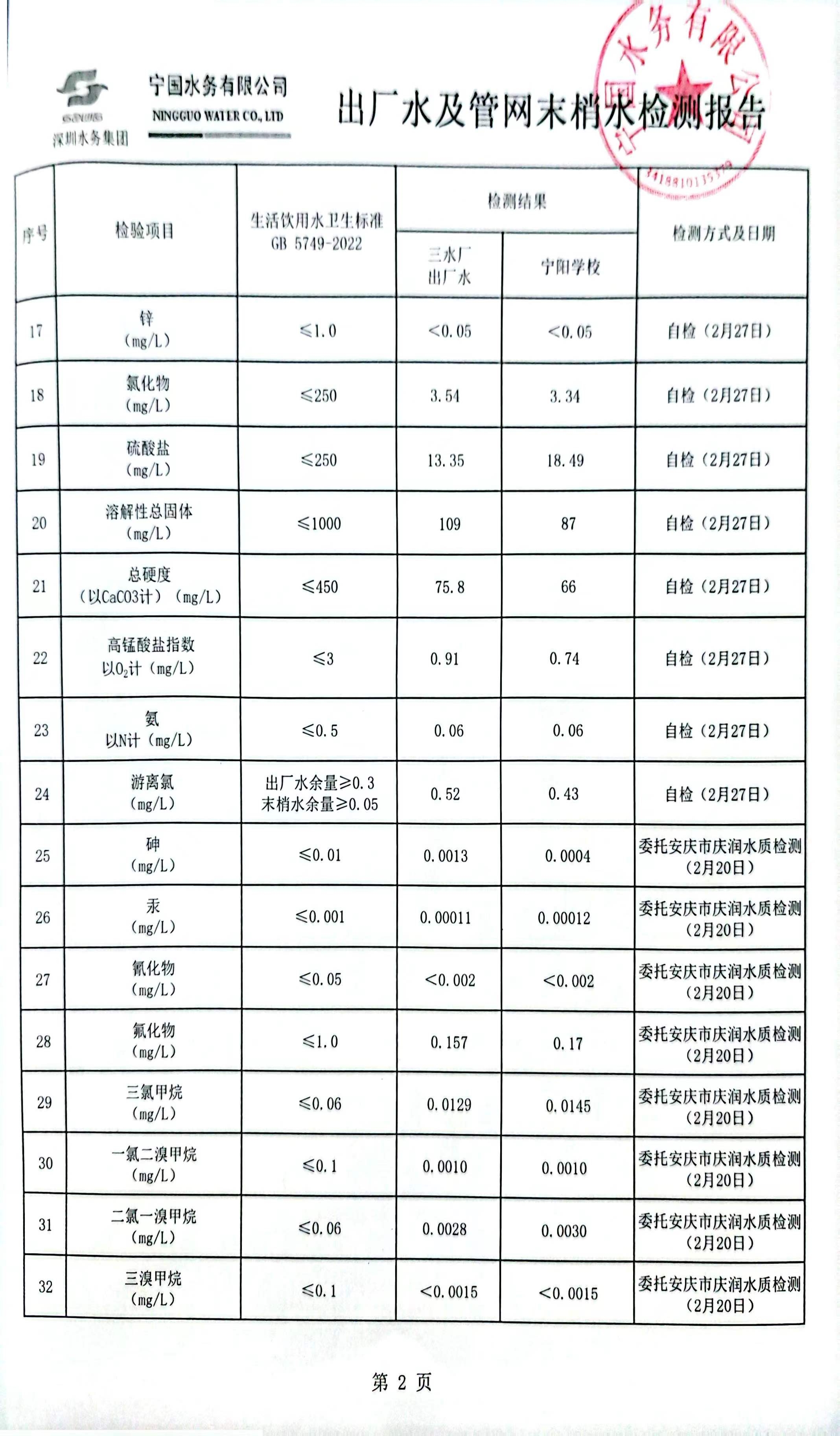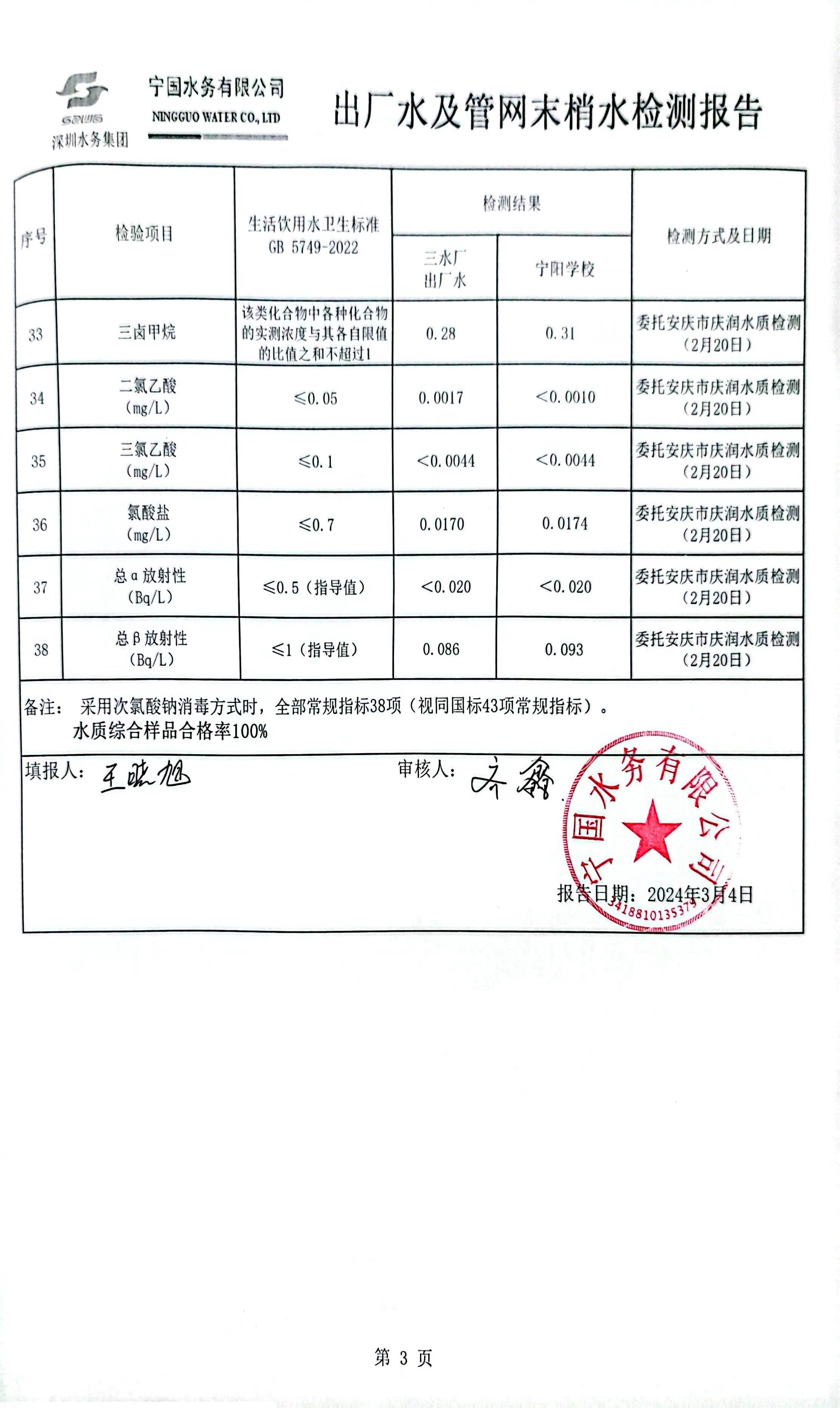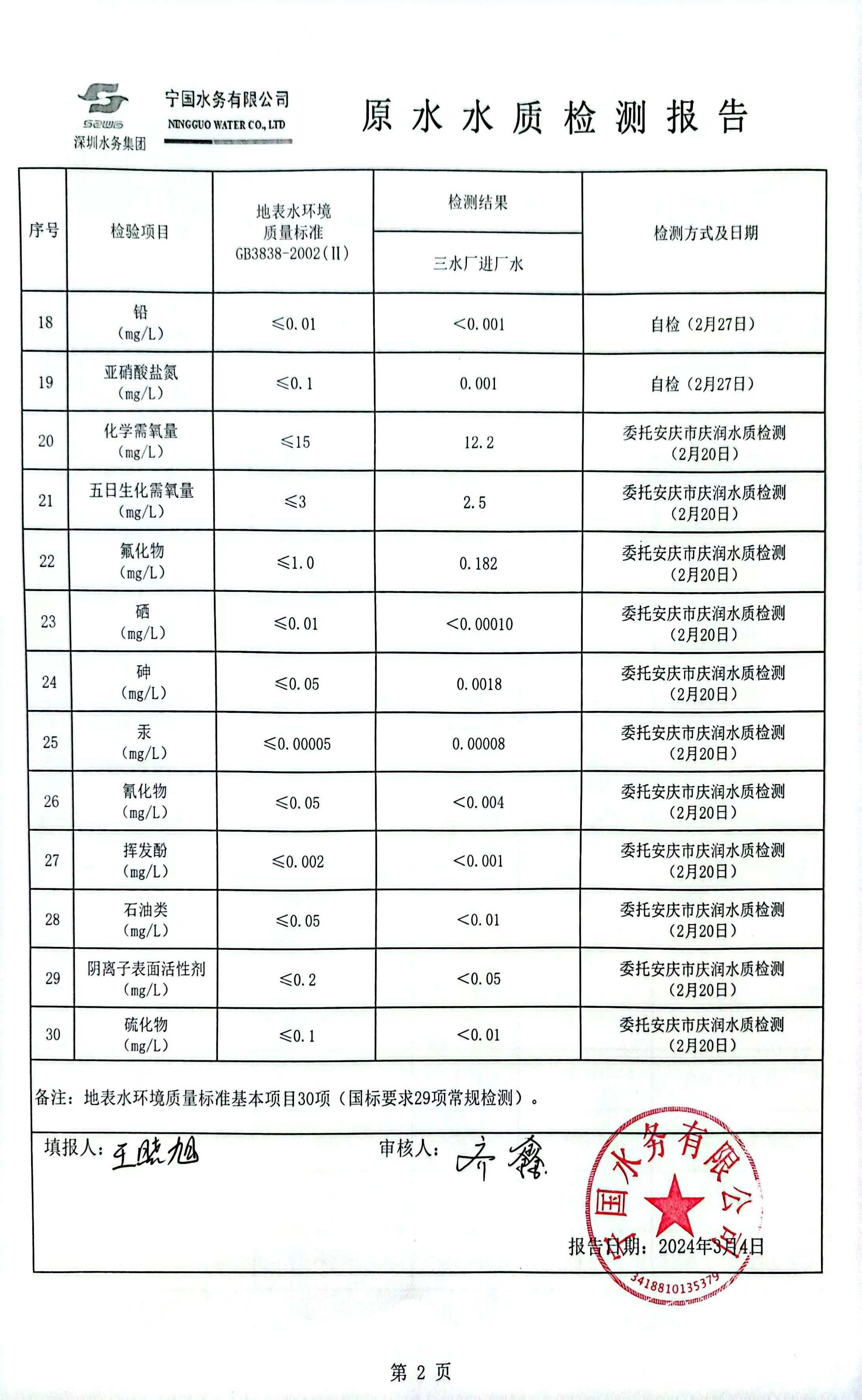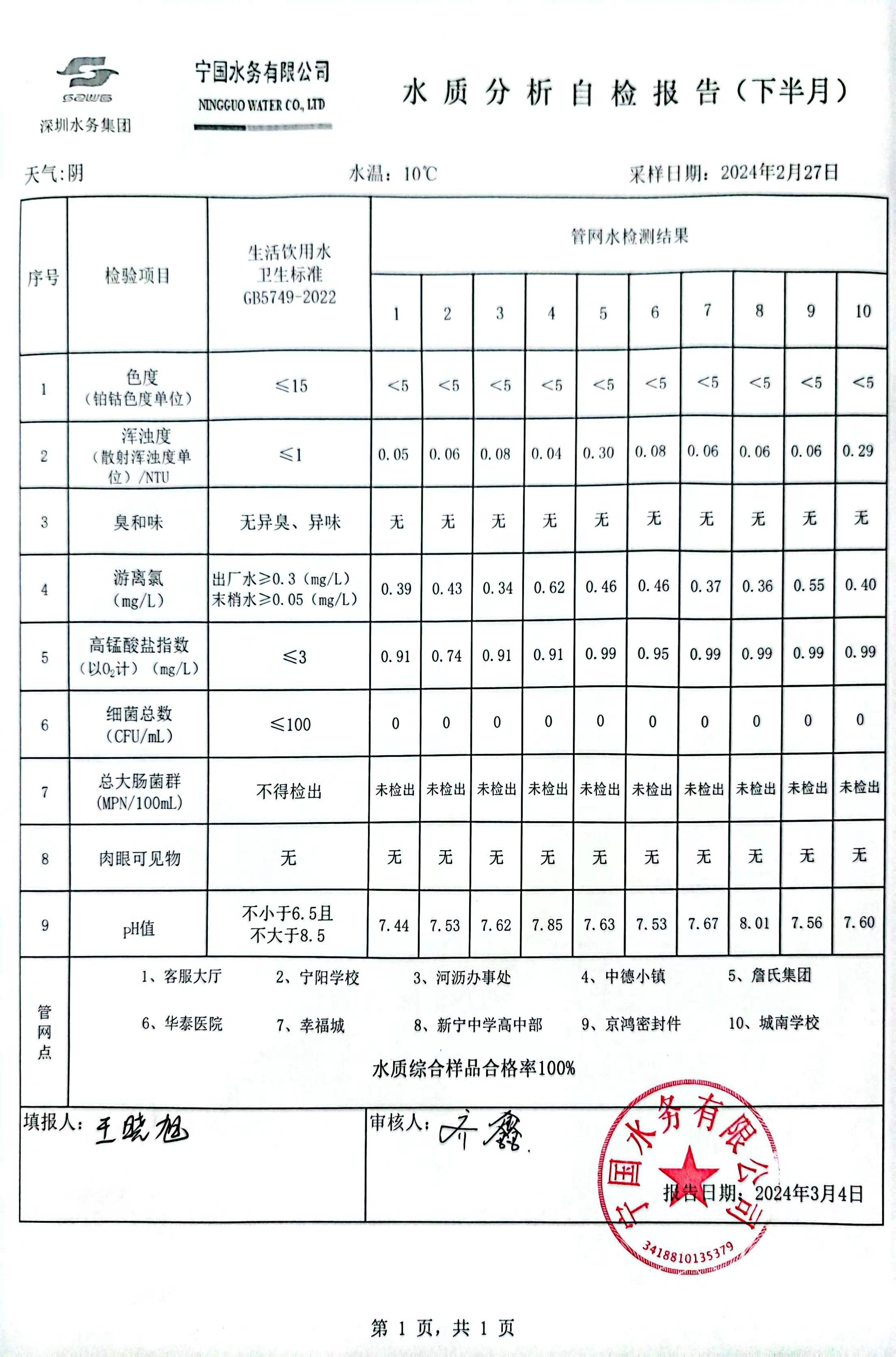 2024年2月份水質(zhì)報告