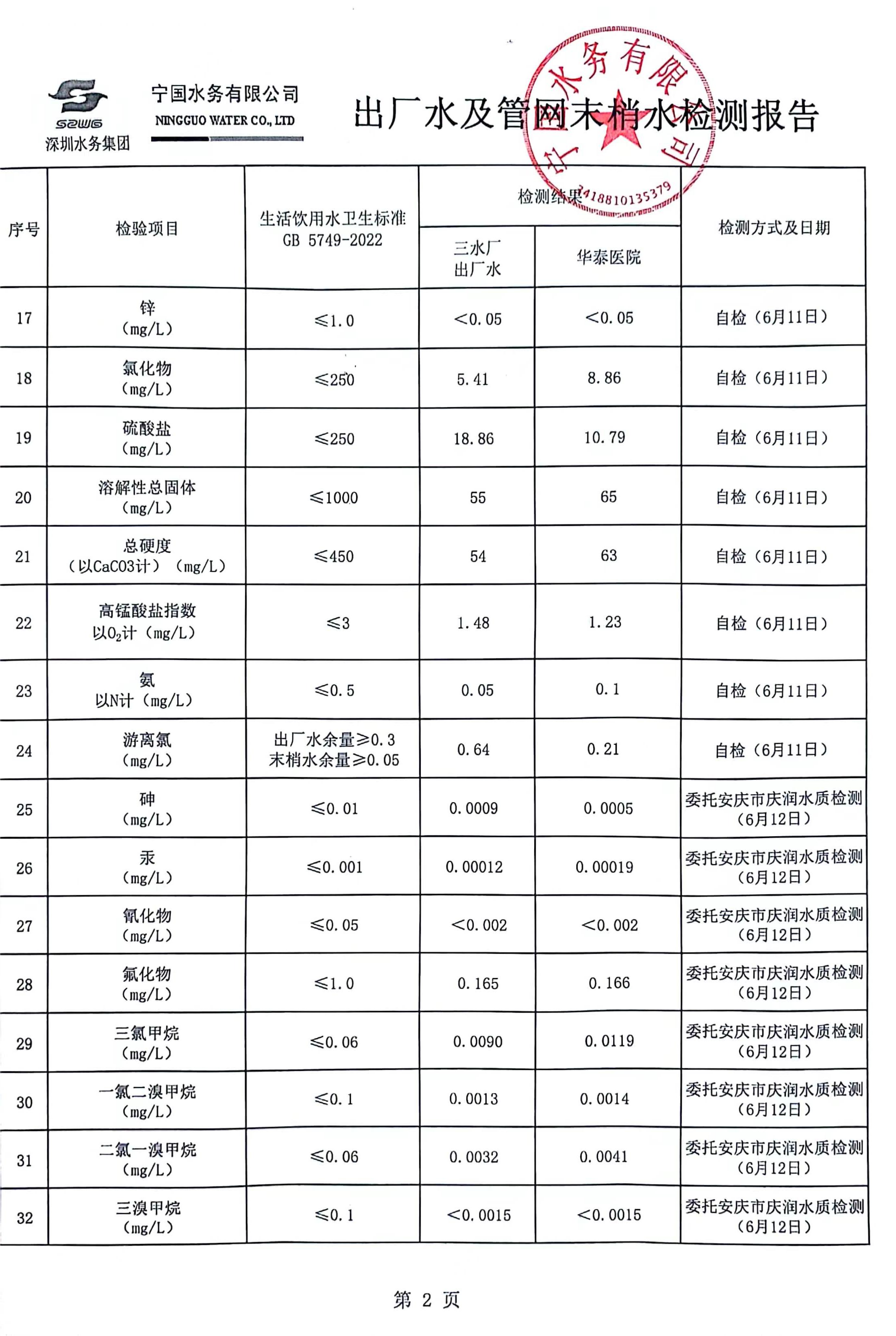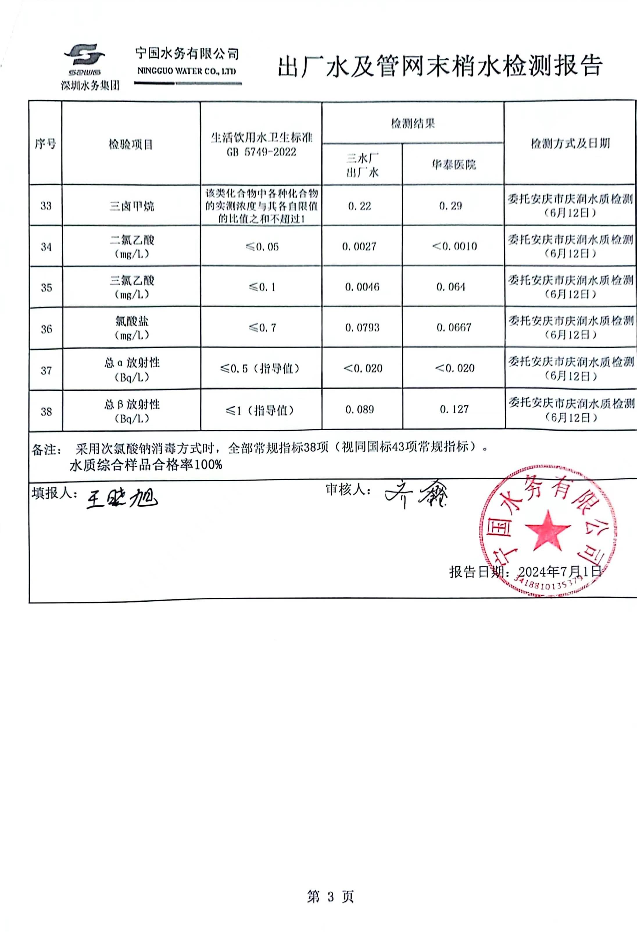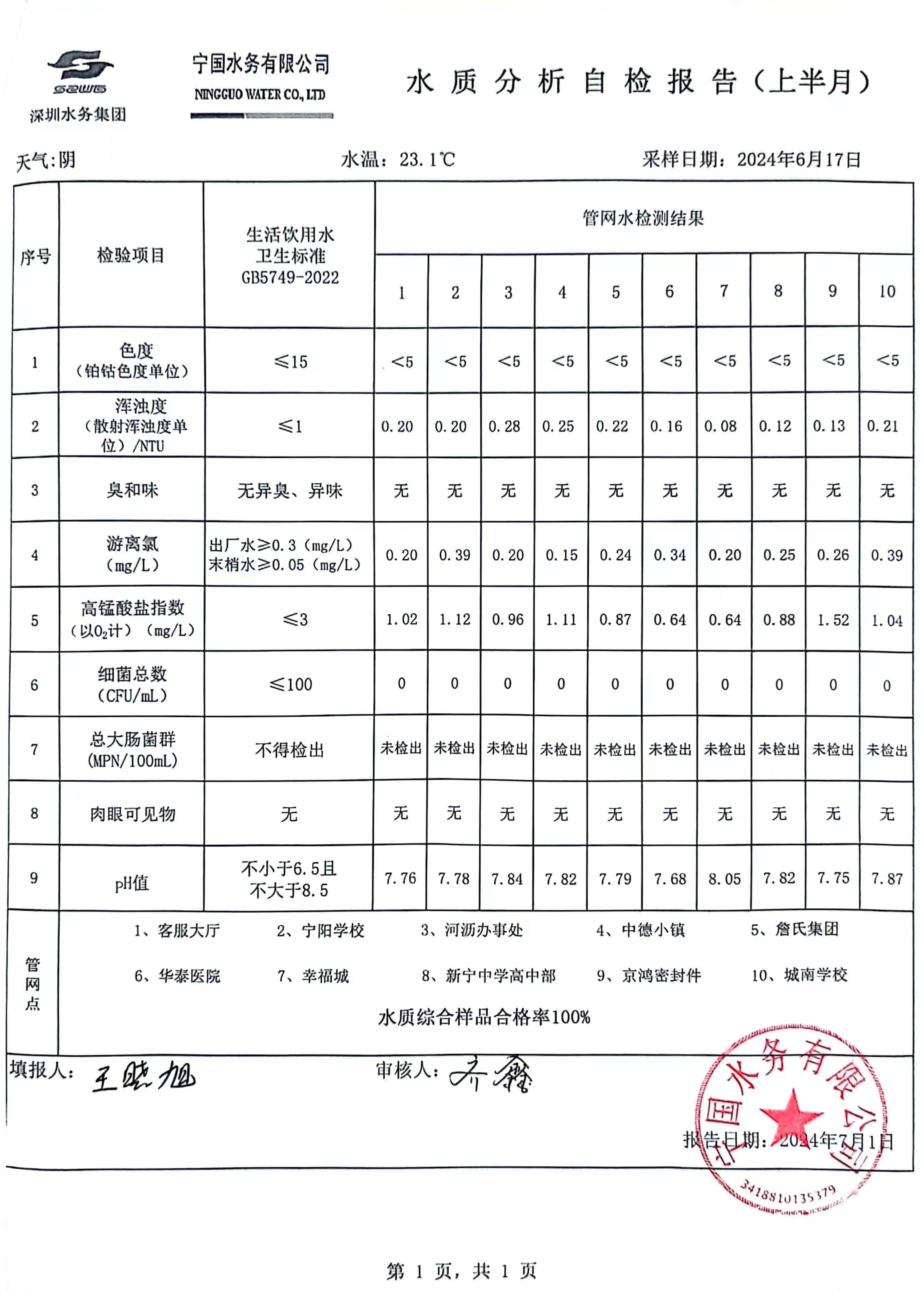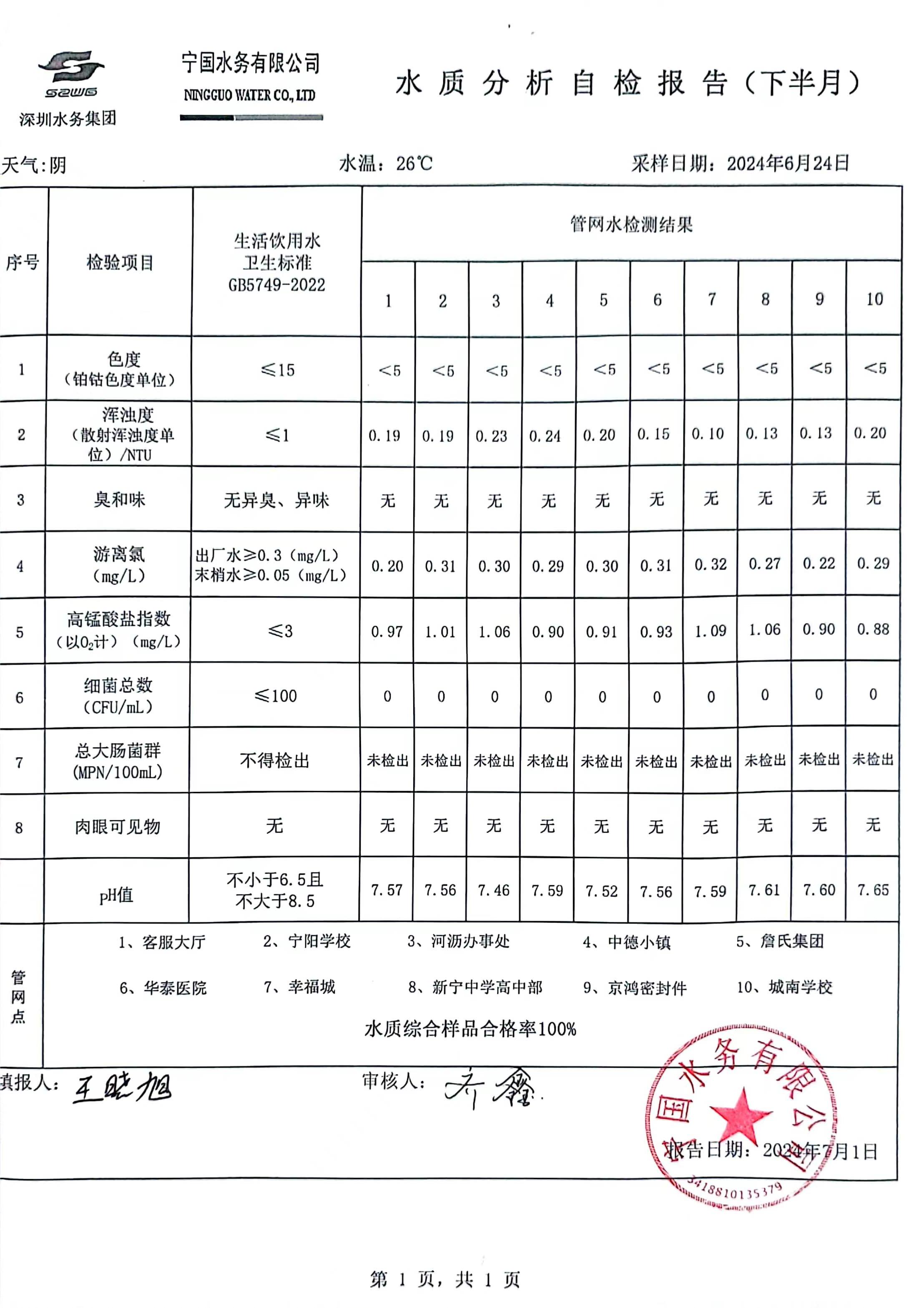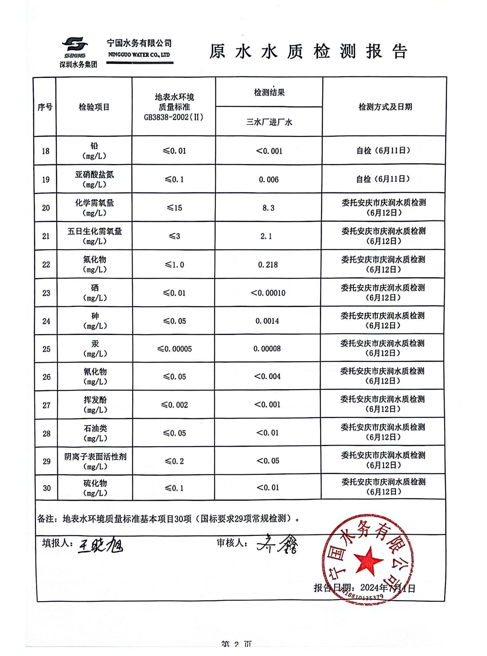 2024年6月份水質(zhì)報(bào)告