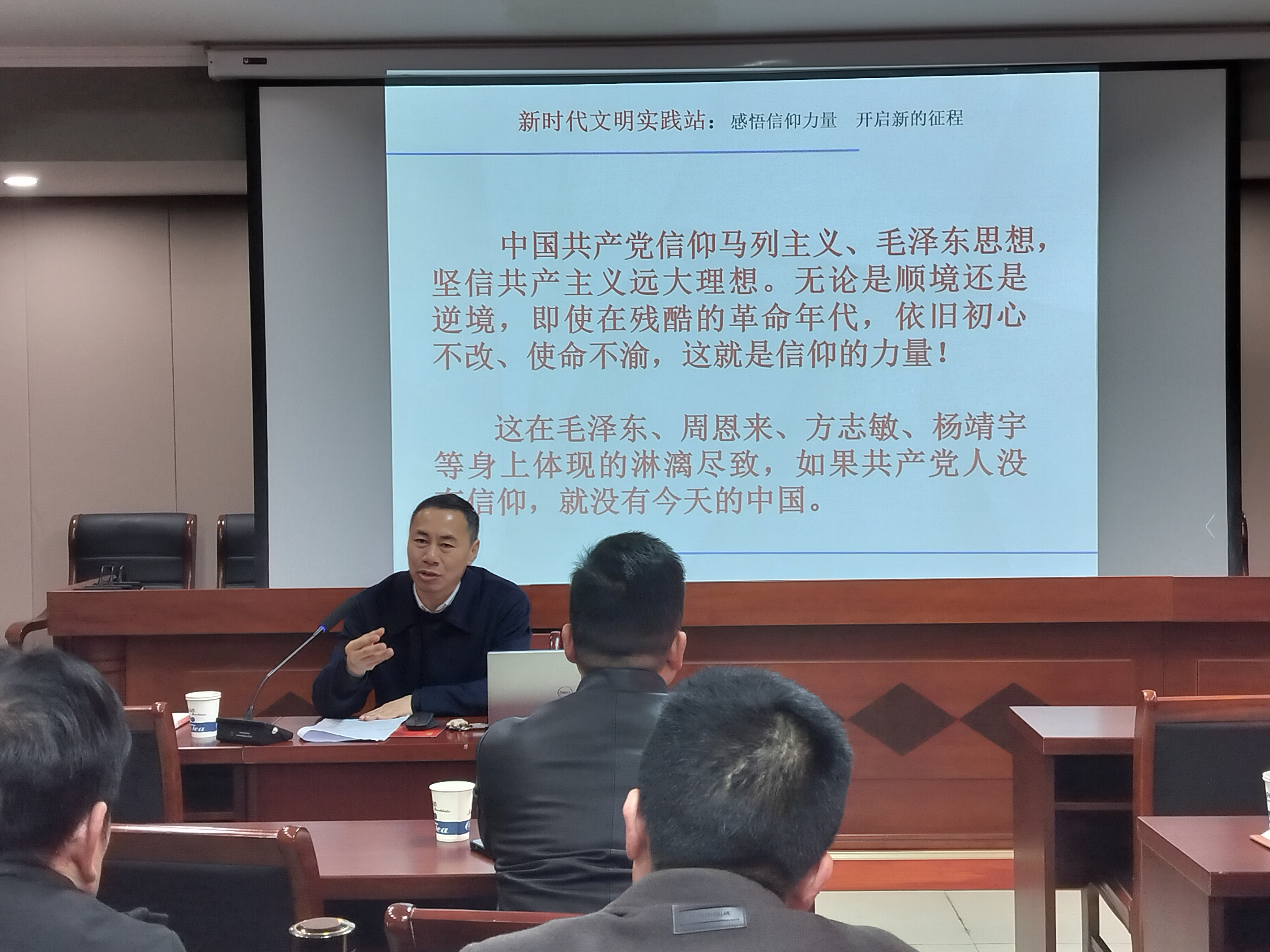 會議還邀請了宣講團成員李碧源老師給大家上黨課。李老師的黨課《感悟信仰力量 開啟新的征程》通過楊靖宇、黃開湘、方志敏、尋淮洲等革命烈士的故事,讓我們從中深刻感悟到革命年代信仰的力量,以激勵我們走好我們這一代人的長征路。